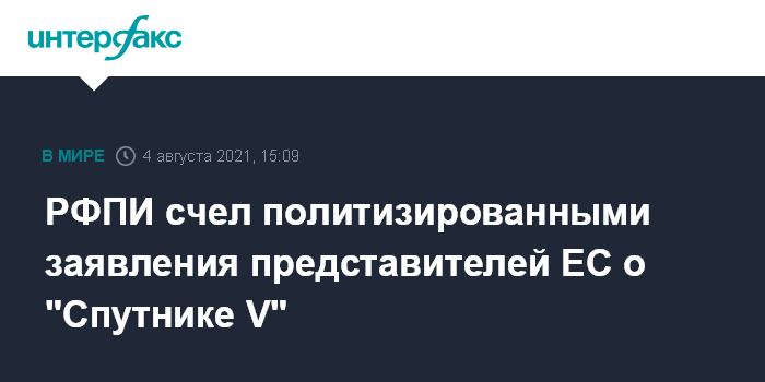 В РФПИ добавили, что "ранее некоторые представители ЕС уже заявляли об отсутствии потребности в вакцине "Спутник V" в ЕС, а также распространяли недостоверную информацию о российской вакцине, которая была неоднократно опровергнута РФПИ и центром им.Гамалеи".