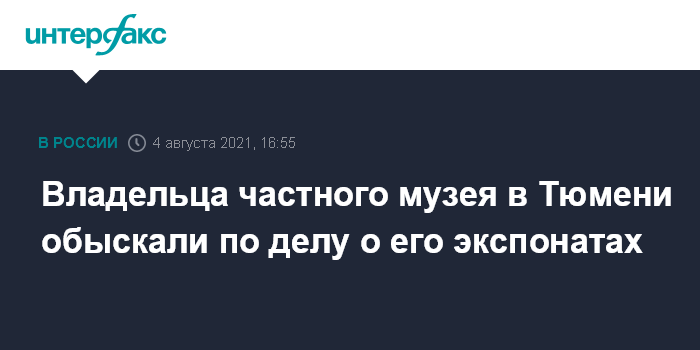 Москва. 4 августа. INTERFAX.RU - В Тюмени сотрудники регионального управления ФСБ пришли с обыском в частный "Музей частных коллекций", а затем обыскали дом его владельца Гая Першинга и увезли его на допрос. Он сообщил во "ВКонтакте", что 2 августа оперативники изъяли из музея от 2000 до 2500 экспонатов.