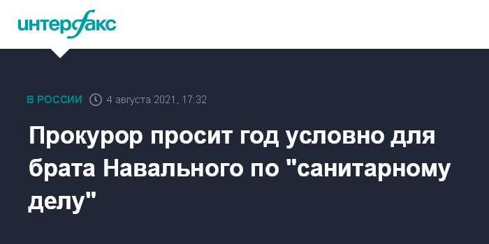 Москва. 4 августа. INTERFAX.RU - Гособвинение попросило суд назначить условный срок брату оппозиционера Алексея Навального - Олегу по делу о подстрекательстве к нарушению санитарно-эпидемиологических правил в ходе несанкционированной акции 23 января в Москве.