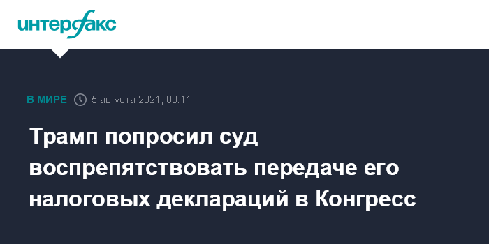 В конце июля 2021 года министерство юстиции США постановило, что министерство финансов США должно передать налоговые декларации Трампа в один из комитетов Палаты представителей Конгресса.