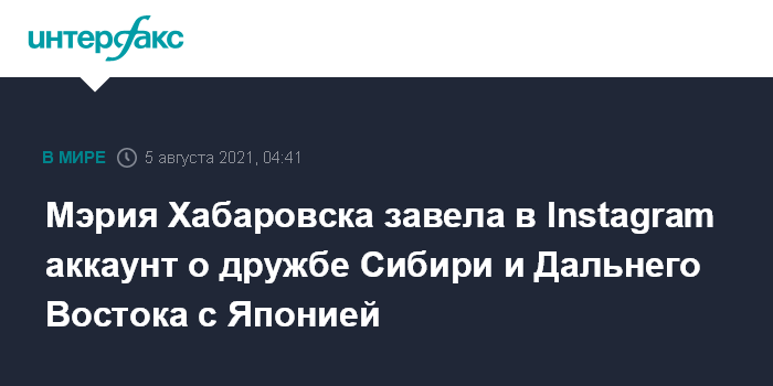 Мэрия Хабаровска завела в Instagram аккаунт о дружбе Сибири и Дальнего Востока с Японией