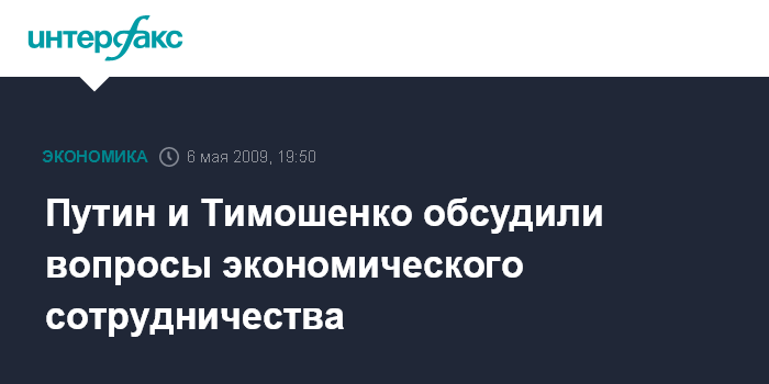 Путин и Тимошенко обсудили вопросы экономического сотрудничества