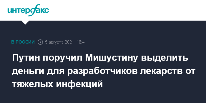Путин поручил Мишустину выделить деньги для разработчиков лекарств от тяжелых инфекций