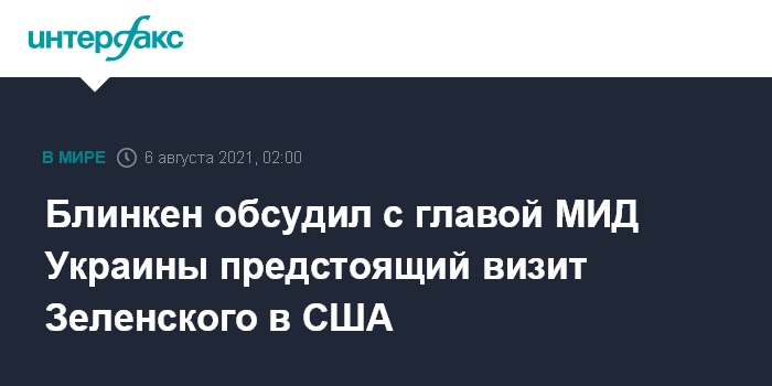 Блинкен и Кулеба также заявили, что займутся подготовкой намеченного на 30 августа визита в Вашингтон президента Зеленского.