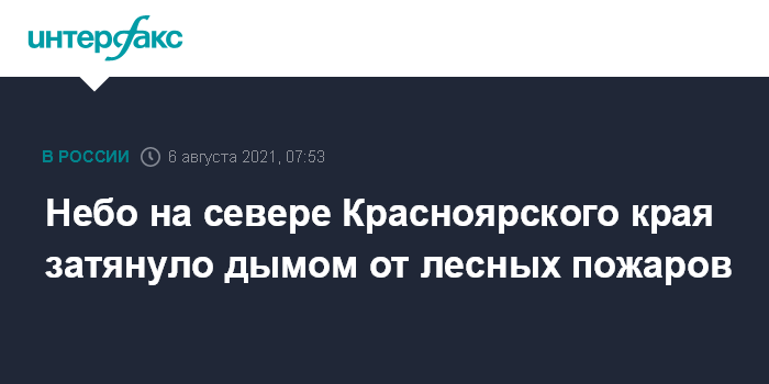 Небо на севере Красноярского края затянуло дымом от лесных пожаров