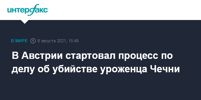 Москва. 6 августа. INTERFAX.RU - Процесс по делу об убийстве чеченца стартовал в Австрии в пятницу, подсудимому грозит пожизненное заключение, сообщает газета Kurier.