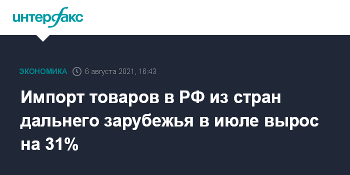 Импорт товаров в РФ из стран дальнего зарубежья в июле вырос на 31%