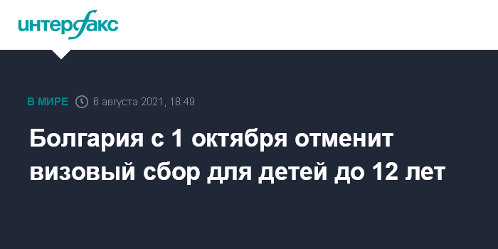 Москва. 6 августа. INTERFAX.RU - Власти Болгарии с октября отменят визовый сбор для детей до 12 лет, в настоящее время за детей 6-12 лет нужно платить 35 евро, сообщает газета Еconomic.