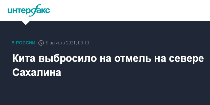 Москва. 9 августа. INTERFAX.RU - На севере Сахалина в воскресенье днем жители обнаружили на берегу кита, предположительно, животное во время прилива в ночь на понедельник смогло уйти в море, сообщил "Интерфаксу" руководитель сахалинского фонда защиты природы "Зелёный Сахалин" Александр Иванов.