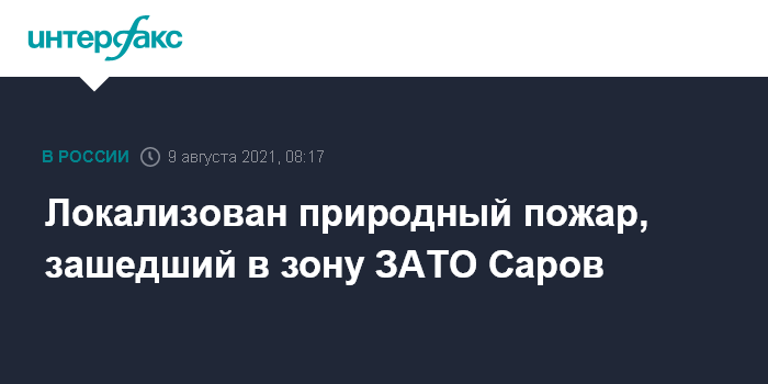Москва. 9 августа. INTERFAX.RU - В городской контролируемой зоне ЗАТО Саров локализовали очаги природного пожара, который 8 августа зашел на территорию образования, сообщили в пресс-службе Российского федерального ядерного центра - Всероссийского научно-исследовательского института экспериментальной физики (РФЯЦ-ВНИИЭФ).