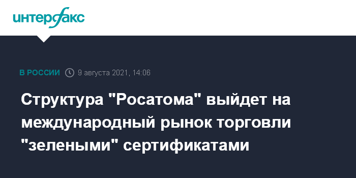 Структура "Росатома" выйдет на международный рынок торговли "зелеными" сертификатами