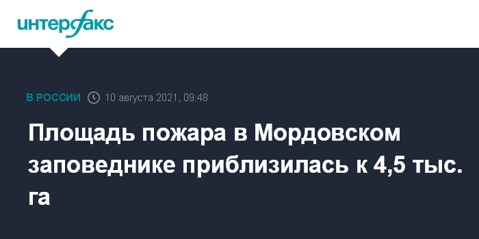 Москва. 10 августа. INTERFAX.RU - Площадь пожара в Мордовском государственном природном заповеднике, с которым активно борются с 3 августа, вновь увеличилась.