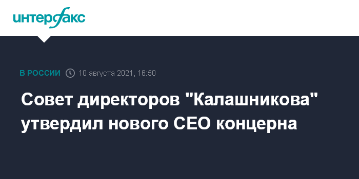 Совет директоров "Калашникова" утвердил нового CEO концерна