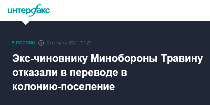 Экс-чиновнику Минобороны Травину отказали в переводе в колонию-поселение
