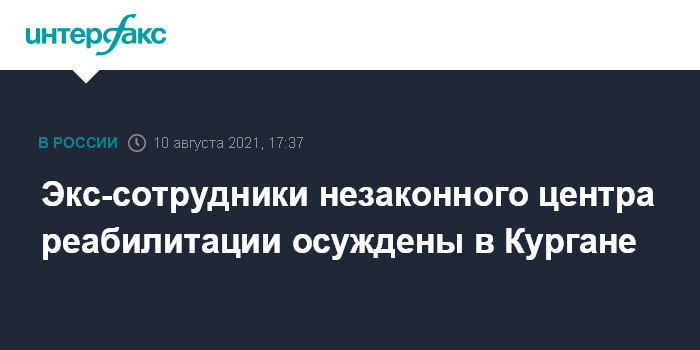 Москва. 10 августа. INTERFAX.RU - Суд в Кургане вынес приговор по делу о незаконной деятельности реабилитационного центра, сообщает во вторник пресс-служба управления СКР по региону.