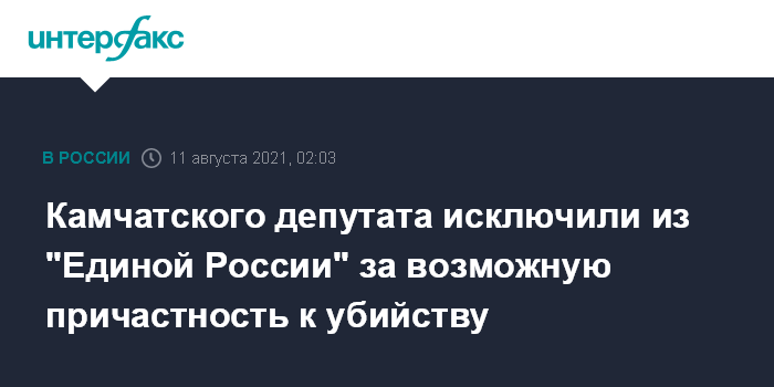 Москва. 11 августа. INTERFAX.RU - Камчатского бизнесмена, депутата краевого Законодательного собрания Игоря Редькина, заявившего о своей возможной причастности к убийству мужчины в поселке Озерновский Усть-Большерецкого района Камчатского края, исключили из "Единой России", сообщается на сайте камчатского регионального отделения партии.