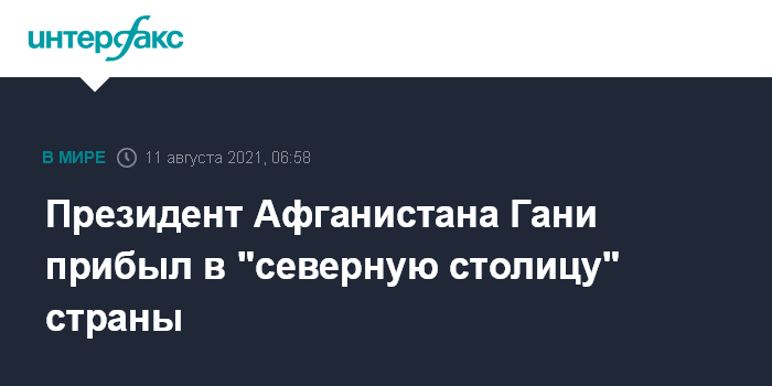 Москва. 11 августа. INTERFAX.RU - На фоне активизации боев на севере Афганистана президент страны Мухаммад Ашраф Гани прибыл в Мазари-Шариф для организации отпора талибам ("Талибан" - запрещенная в России террористическая организация).