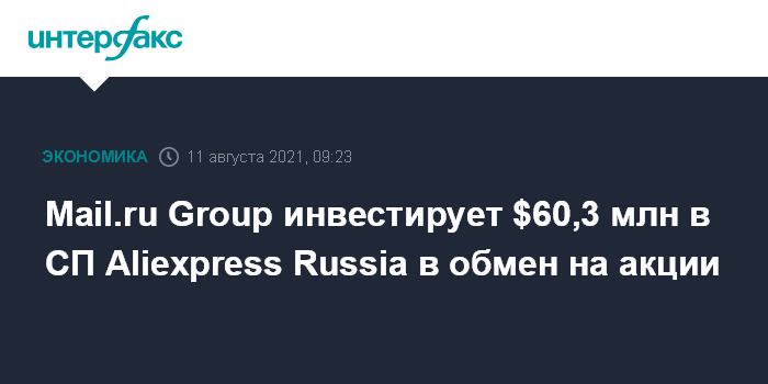 Mail.ru Group инвестирует $60,3 млн в СП Aliexpress Russia в обмен на акции