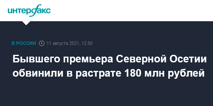 Бывшего премьера Северной Осетии обвинили в растрате 180 млн рублей