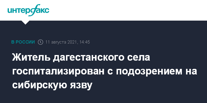 Москва. 11 августа. INTERFAX.RU - Случай заражения человека сибирской язвой зафиксирован в Карабудахкентском районе Дагестана. Об этом сообщает пресс-служба районной администрации в среду.