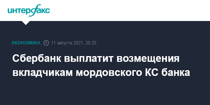 Сбербанк выплатит возмещения вкладчикам мордовского КС банка