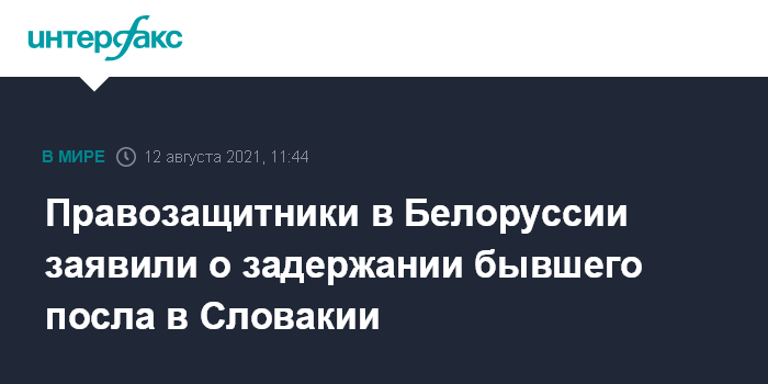 Москва. 12 августа. INTERFAX.RU - Бывшего посла Белоруссии в Словакии Игоря Лещеню, который уволился после президентских выборов 2020 года, задержали, сообщает незарегистрированный в республике правозащитный центр "Весна" в четверг.