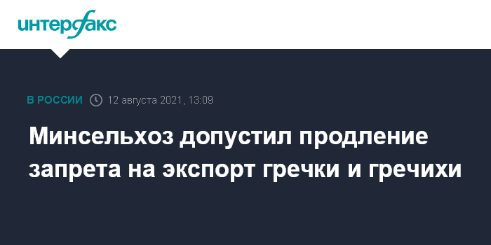 В мае экспорт гречихи ограничили, поскольку с ноября 2020 года отмечалось существенное увеличение экспорта российской гречихи в ряд стран-импортеров на фоне сложившейся мировой конъюнктуры.