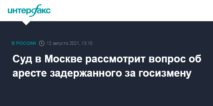 Москва. 12 августа. INTERFAX.RU - Лефортовский суд Москвы зарегистрировал ходатайство следствия об аресте гражданина России, задержанного по делу о государственной измене.