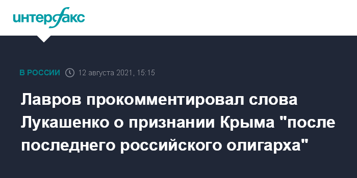 Лавров прокомментировал слова Лукашенко о признании Крыма "после последнего российского олигарха"