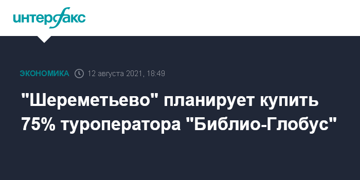 Директор по связям с общественностью МАШ Анна Захаренкова сообщила "Интерфаксу", что аэропорт подписал соглашение о намерениях купить 75% в ООО "Туроператор БГ", основном юрлице "Библио-Глобуса". Также стороны оформляют ходатайство в Федеральную антимонопольную службу на получение одобрения сделки, добавила она Завершение сделки, по словам Захаренковой, запланировано на конец сентября 2021 года. Финансовые условия не раскрывается.