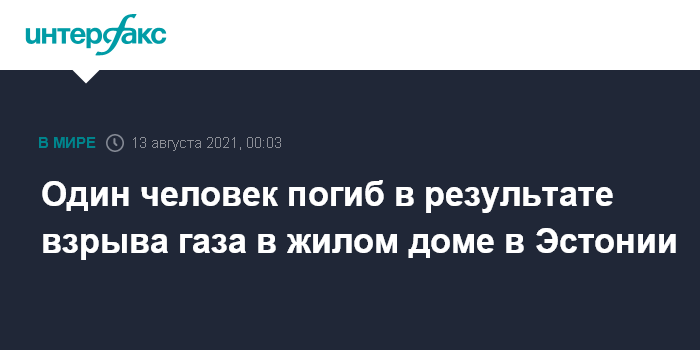 Москва. 13 августа. INTERFAX.RU - В Эстонии в городе Тарту в результате взрыва газа в жилом доме на улице Яама в четверг погиб один человек, еще восемь пострадали.