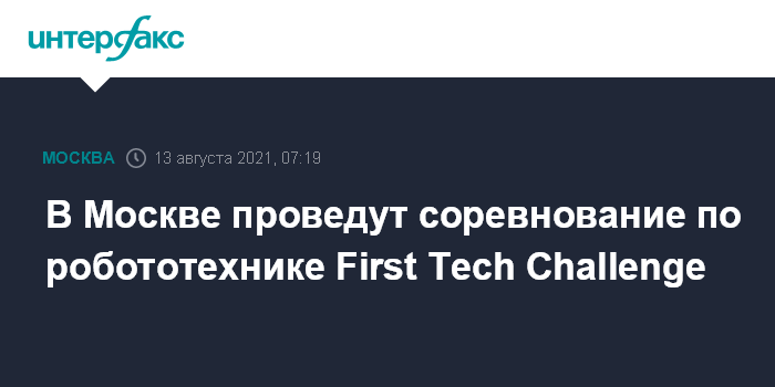 Москва. 13 августа. INTERFAX.RU - В Москве пройдут соревнования одного из направлений международного турнира по робототехнике для подростков First Tech Challenge, его победители станут известны в феврале; победители национального чемпионат, который пройдет в 2022 году, получат дополнительные баллы при поступлении в вузы, сообщила заммэра Москвы Наталья Сергунина.