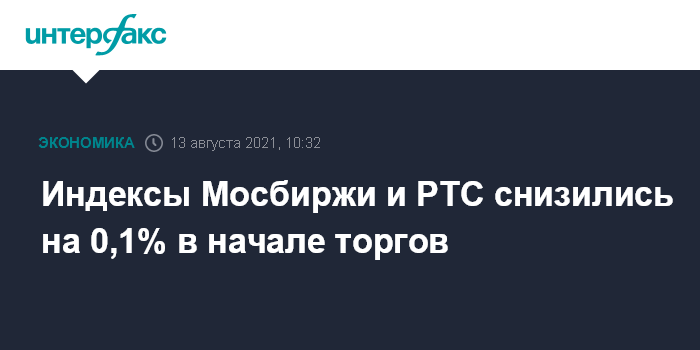 Индексы Мосбиржи и РТС снизились на 0,1% в начале торгов