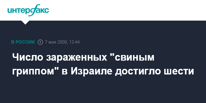 Иерусалим/Мадрид. 7 мая. INTERFAX.RU - Число израильтян, заразившихся вирусом гриппа A/H1N1, выросло до шести человек, сообщило в четверг агентство ЭФЭ со ссылкой на санитарно-эпидемиологические службы Израиля.