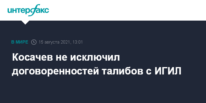 Москва. 15 августа. INTERFAX.RU - Вице-спикер спикер Совета Федерации Константин Косачев не исключает сценарий, при котором представители движения "Талибан" (запрещено в России) смогут договориться с ИГИЛ (запрещено в РФ).