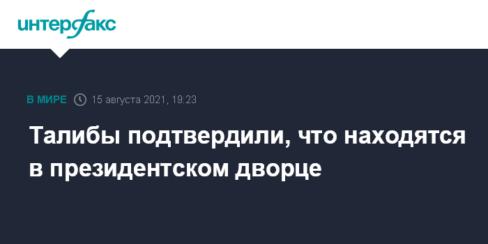 Москва. 15 августа. INTERFAX.RU - Официальные лица движения "Талибан" (запрещено в России) находятся в президентском дворце в Кабуле, сообщил представитель талибов Альханафи Вардак.