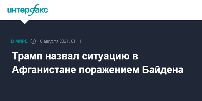 Москва. 16 августа. INTERFAX.RU - Президент США Джо Байден, не справившись с ситуацией в Афганистане, потерпел одно из самых жестоких поражений в американской истории, заявил бывший президент Дональд Трамп.