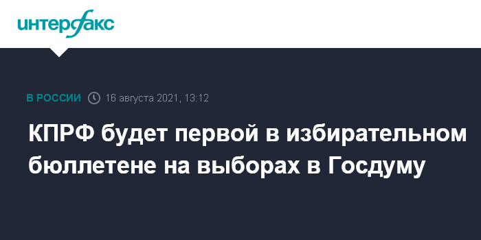 Москва. 16 августа. INTERFAX.RU - Партия КПРФ будет на первом месте в избирательном бюллетене на предстоящих парламентских выборах - таков результат жеребьевки между партиями в Центризбиркоме России.