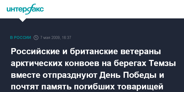 Российские и британские ветераны арктических конвоев на берегах Темзы вместе отпразднуют День Победы и почтят память погибших товарищей