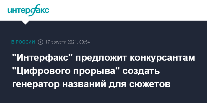 "Интерфакс" предложит конкурсантам "Цифрового прорыва" создать генератор названий для сюжетов