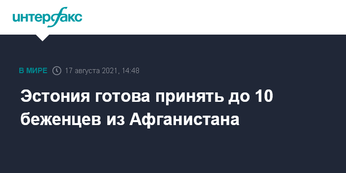 Москва. 17 августа. INTERFAX.RU - Эстония готова принять до 10 эвакуированных из Афганистана лиц, в число которых входят люди, которые сотрудничали как с ЕС, так и с НАТО, а также их ближайшие родственники, заявила премьер-министр Кая Каллас (Kaja Kallas).