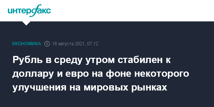 По мнению экспертов "Интерфакс-ЦЭА", незначительные изменения курса рубля к доллару и евро на старте торгов 18 августа обусловлены позитивными сигналами с мировых рынков. Поддержку нацвалюте оказывает рост нефтяных котировок и некоторое повышение аппетита инвесторов к риску. При этом участники рынка сохраняют свои опасения из-за распространения нового штамма COVID-19 "дельта", что может замедлить темпы восстановления мировой экономики.