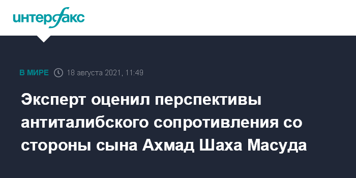 "Группировка, выступающая против талибов, находится в сложном положении с военной точки зрения. Делать прогнозы о масштабах антиталибского сопротивления, на мой взгляд, представляется бесперспективным", - добавил эксперт.