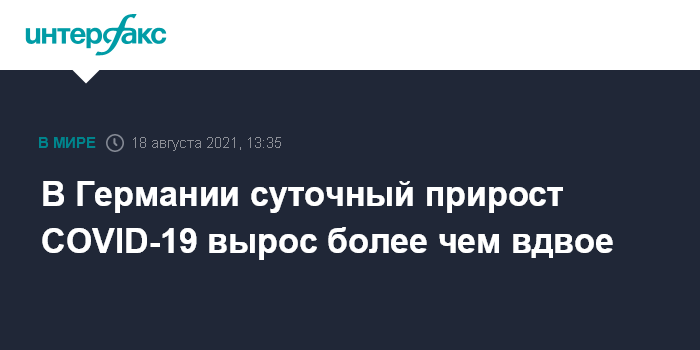 RKI фиксирует и рост семидневного коэффициента заражаемости в стране: по данным на утро 18 августа он достиг 40,8 на сто тысяч человек, 17 августа он составлял 37,4, а неделей ранее - 25,1.
