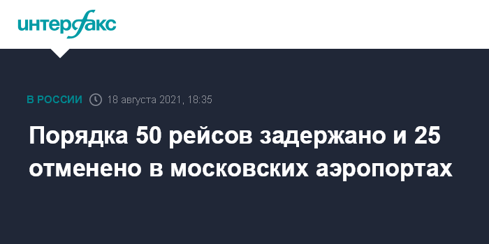 Москва. 18 августа. INTERFAX.RU - В аэропортах московского авиаузла задержано 46 авиарейсов, еще 25 отменено в период сильного ливня.