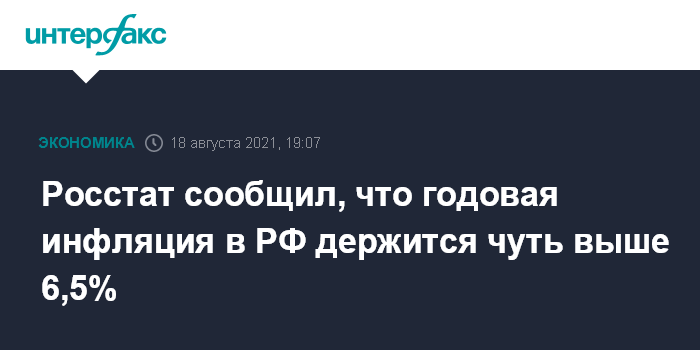 Росстат сообщил, что годовая инфляция в РФ держится чуть выше 6,5%