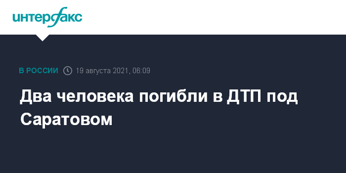 Москва. 19 августа. INTERFAX.RU - Дорожная авария в Саратовской области унесла жизни двух человек, сообщили "Интерфаксу" в УГИБДД региона.