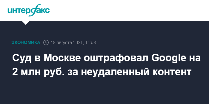 Суд в Москве оштрафовал Google на 2 млн руб. за неудаленный контент