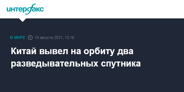 Москва. 19 августа. INTERFAX.RU - Китай успешно вывел на гелиосинхронную орбиту Земли вторую группу спутников дистанционного зондирования "Тяньхуэй II-02". Об этом сообщила в четверг Китайская глобальная телевизионная сеть (CGTN).
