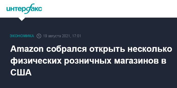 Москва. 19 августа. INTERFAX.RU - Американский интернет-ритейлер Amazon.com Inc планирует открыть несколько крупных физических розничных площадок в США, которые будут работать как универсальные магазины. Об этом пишет газета The Wall Street Journal со ссылкой на информированные источники.